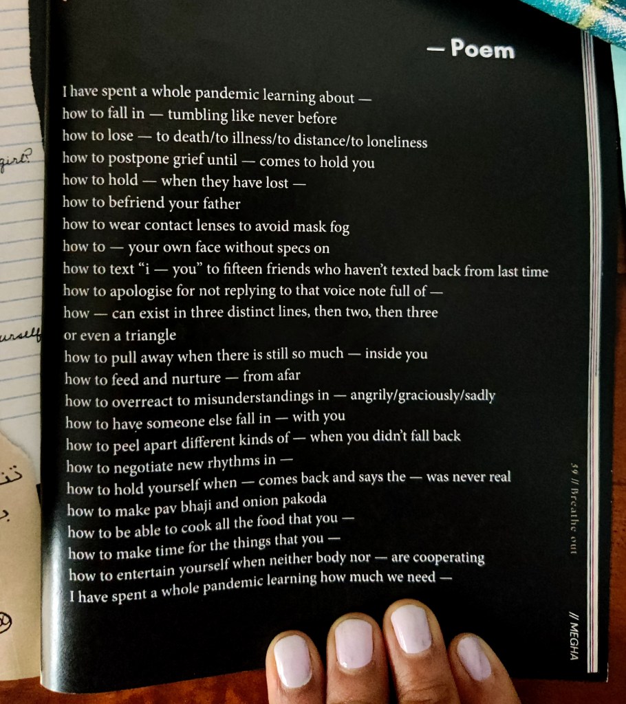 Megha contributed the first chapter, on Joy and Healing, to this anthology in 2023. It includes 23 of their poems, written over the past decade, through university and beyond, on friendship and other relationships.